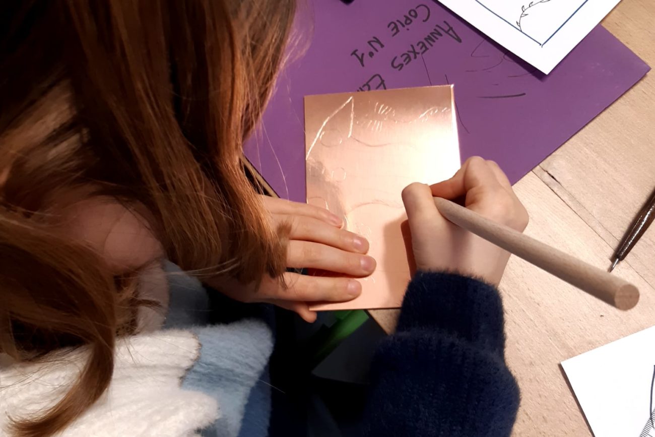 Stage de gravure des enfants de l’école de CM1 et CM2 de Saint-Léon