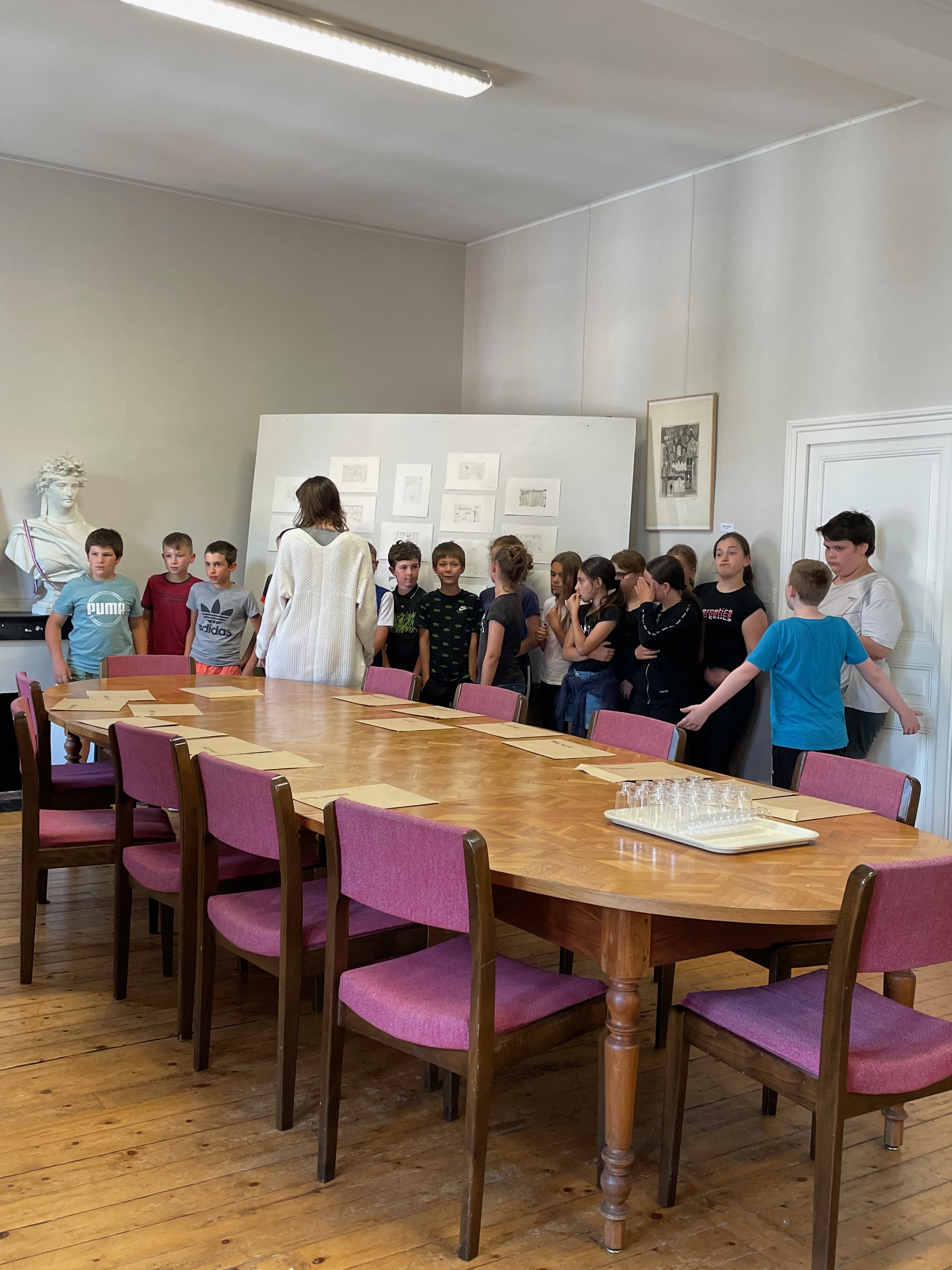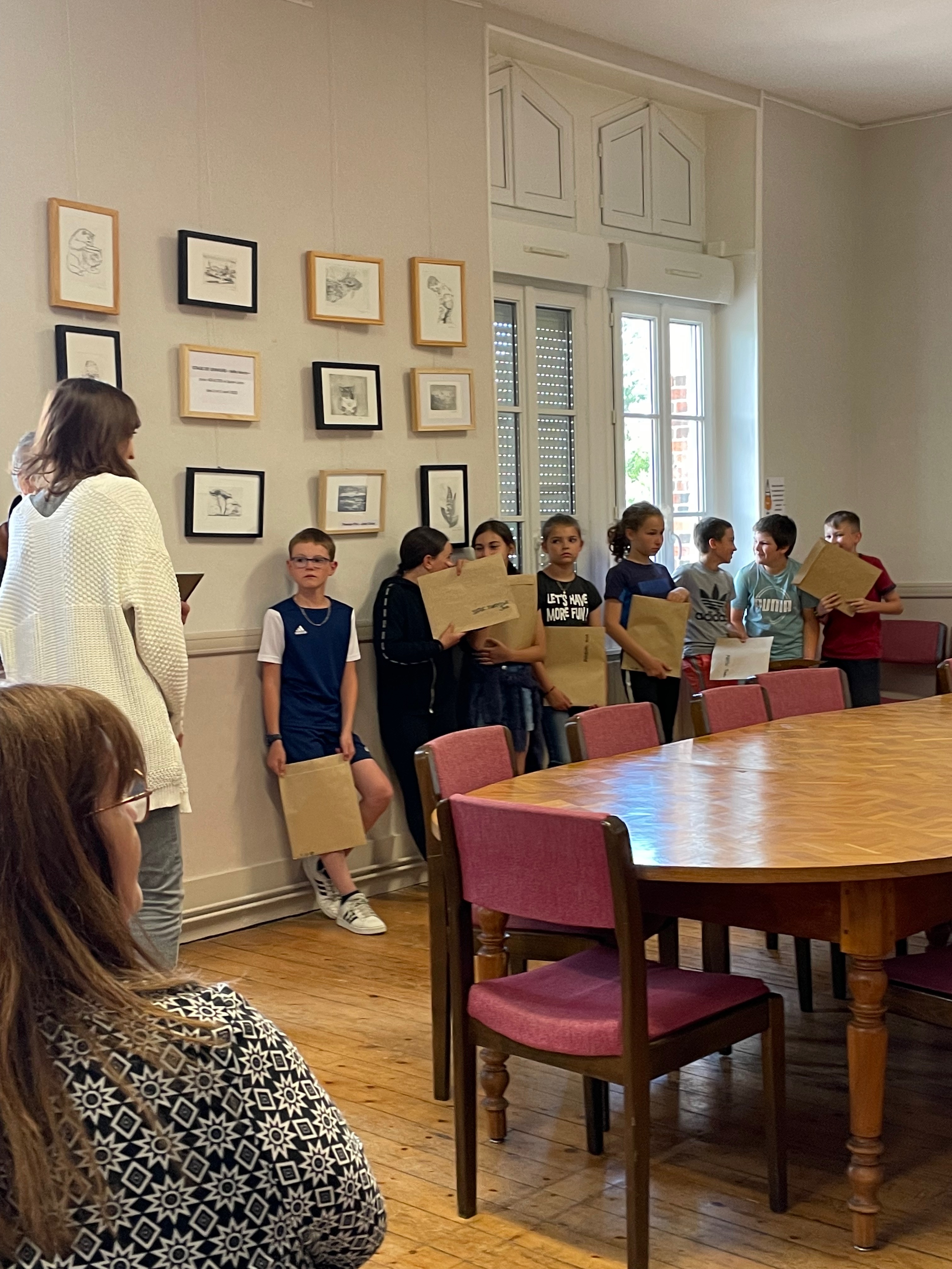Exposition à la mairie des oeuvres et remise des plaques et gravures aux enfants