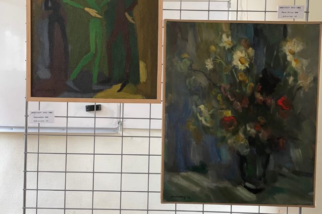 15 oeuvres de Jean Couy ( une huile et dessins , lavis , gravures ) exposées à la médiathèque de Maisons-Alfort du 17 octobre au 2 décembre 2023 .